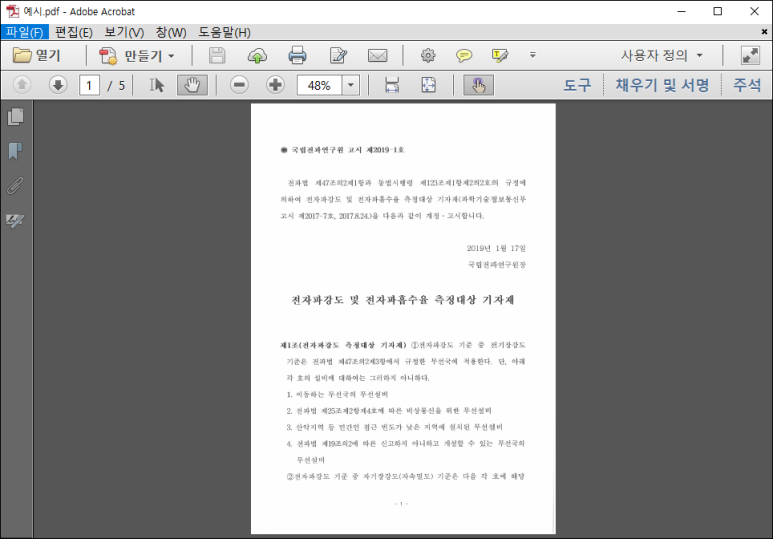 2. 세워줄 스캔파일 Adobe PDF Reader로 실행시켜준다.