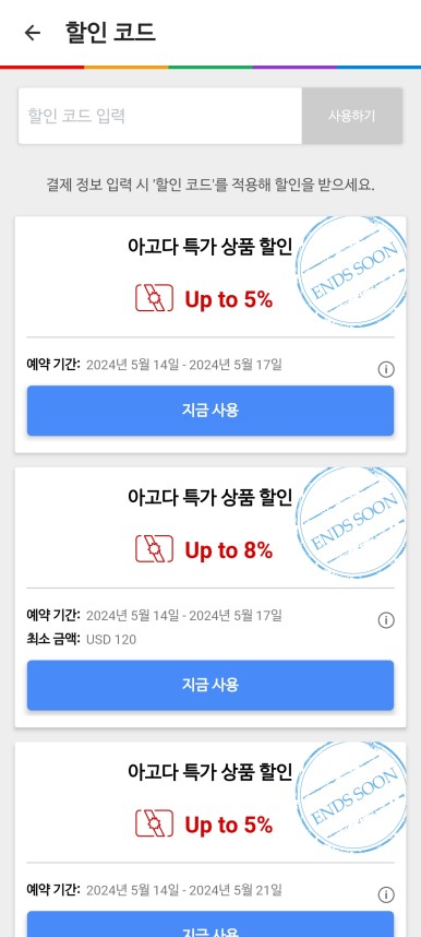 그 외에도 앱이나 홈페이지에서 받을 수 있는 쿠폰을 받은 뒤 사용해서 코드를 적용시켜야합니다.
