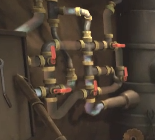 가스들이 지나다니고 있기 때문에 밸브를 조절하여 테이프가 감긴 파이프쪽으로 가스가 움직이지 않게 조절하면 됩니다.