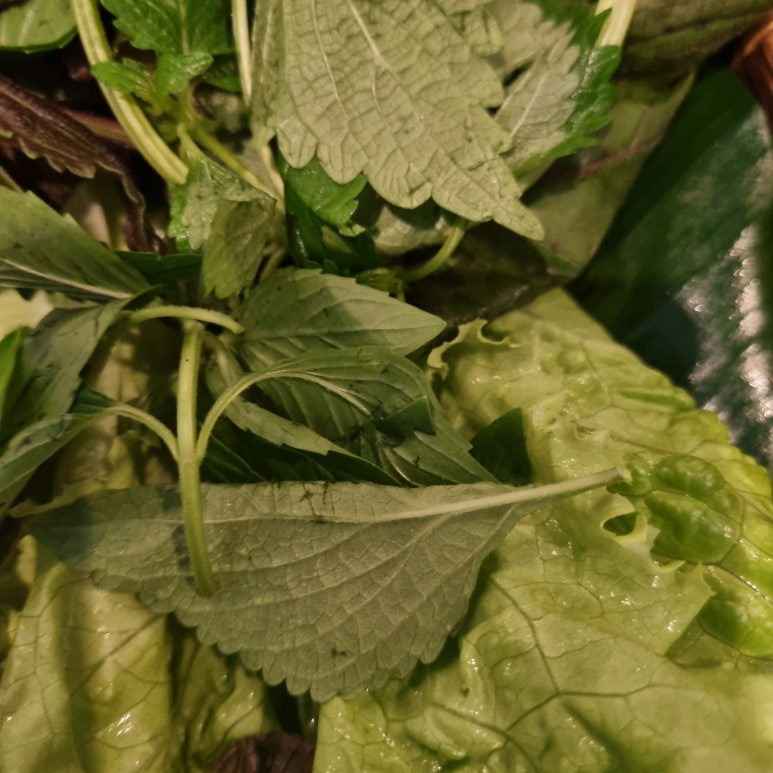 다양한 채소들임 함께 나오고, 약한 씁씁한 맛이 나는 채소도 포함되어 있으니 기호에 맞춰서 드시면 될 것 같습니다. 확실히 베트남 음식들은 느억맘 소슬르 찍어서 채소들과 함께 와구와구 먹을때 맛있더라구요.