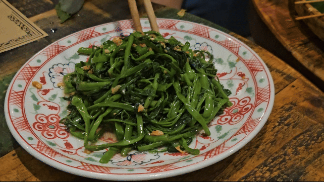 한국어로하면 공심채 볶음입니다. 먹어보기 전까지는 '굳이 왜 먹나?'라는 생각을 많이 했는데, 한번 접한 뒤로는 베트남 올 때마다 꾸준히 먹고 있습니다. (79,000동 = 한화 약 4,500원)